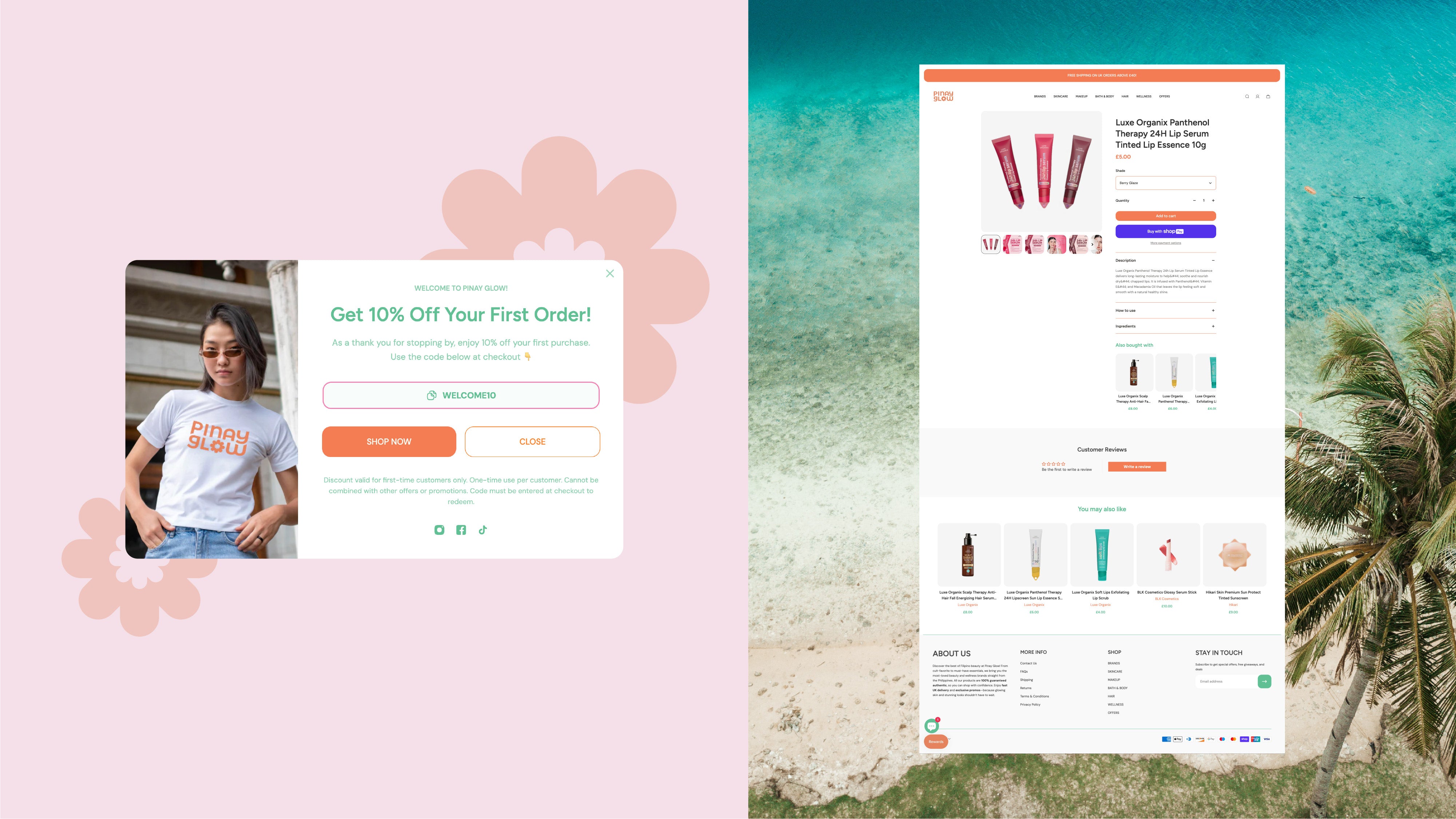 Pinay Glow UK needed a website that could match their growth and serve their community better. Their old site lacked the structure to scale, so we focused on building a user-friendly platform. Drawing inspiration from tropical landscapes and cultural warmth, we created clean menus, seamless navigation, and an intuitive shopping flow. The redesigned site enhances the customer experience while empowering Pinay Glow to grow with confidence.